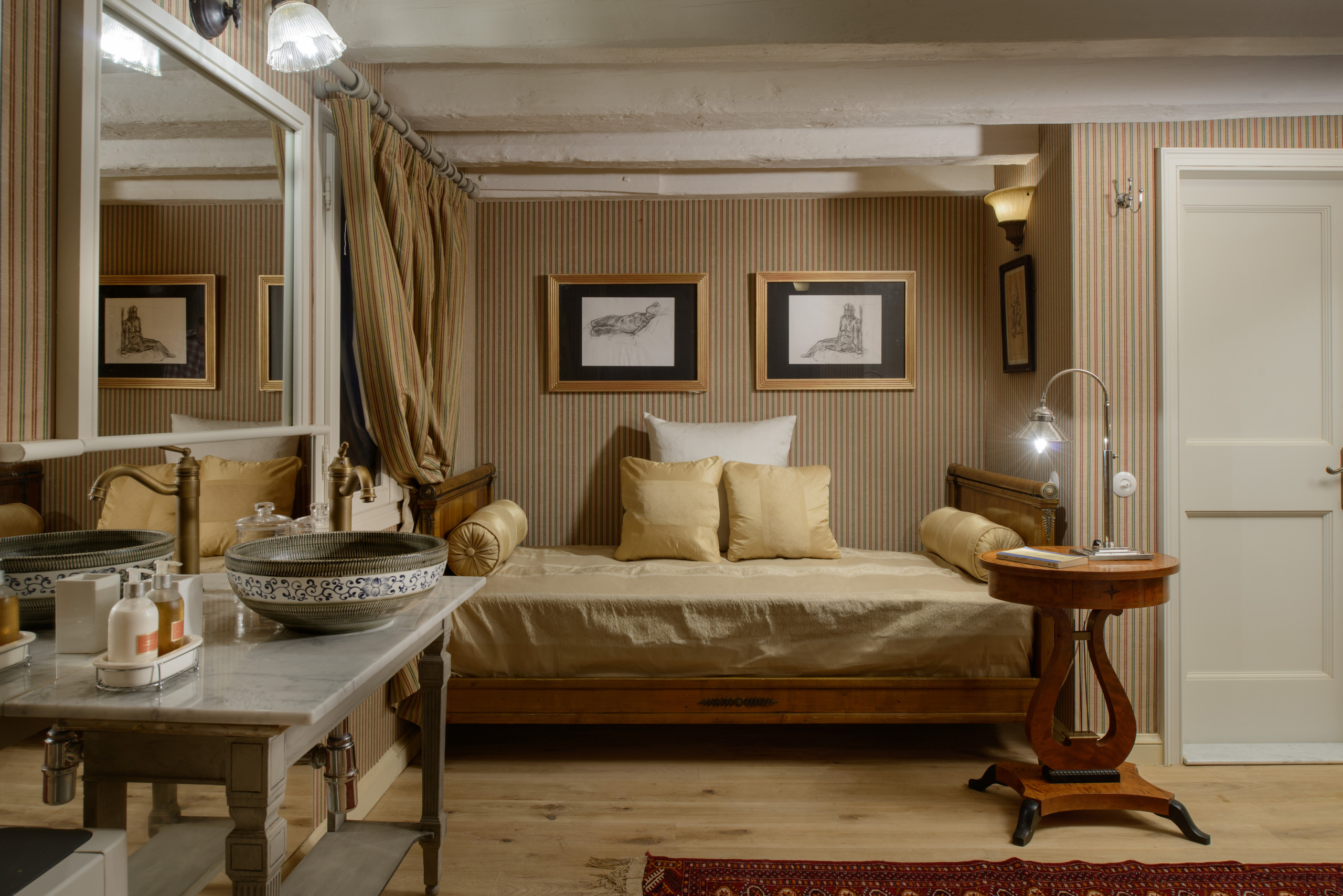 Arredata in raffinato stile Biedermeier, questa seconda camera offre uno spogliatoio privato e un ampio bagno en-suite con doccia walk-in.