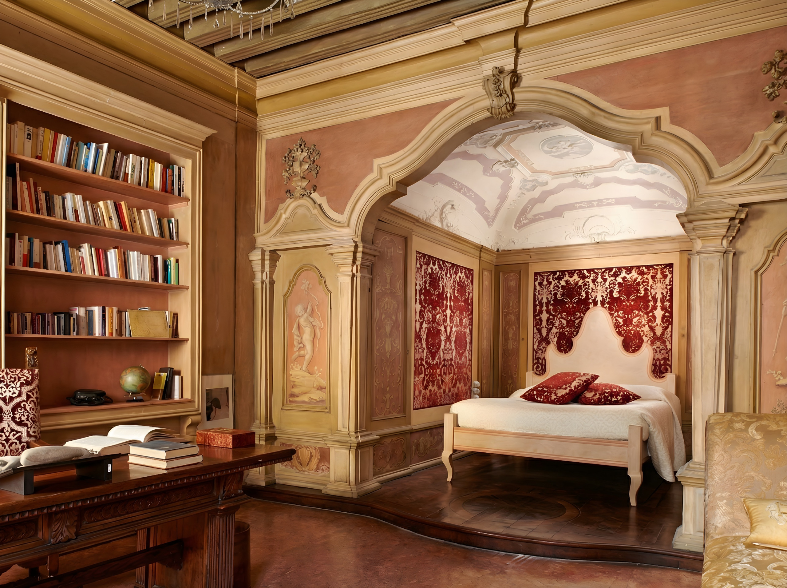 The original terrazzo veneziano floors shine throughout the property, while the stuccoed walls and restored frescoes reveal the palette and atmosphere of the early 1600s—an era during which, according to tradition, Casanova himself may have passed through these rooms. Later, Friedrich Nietzsche also found inspiration within these very walls.