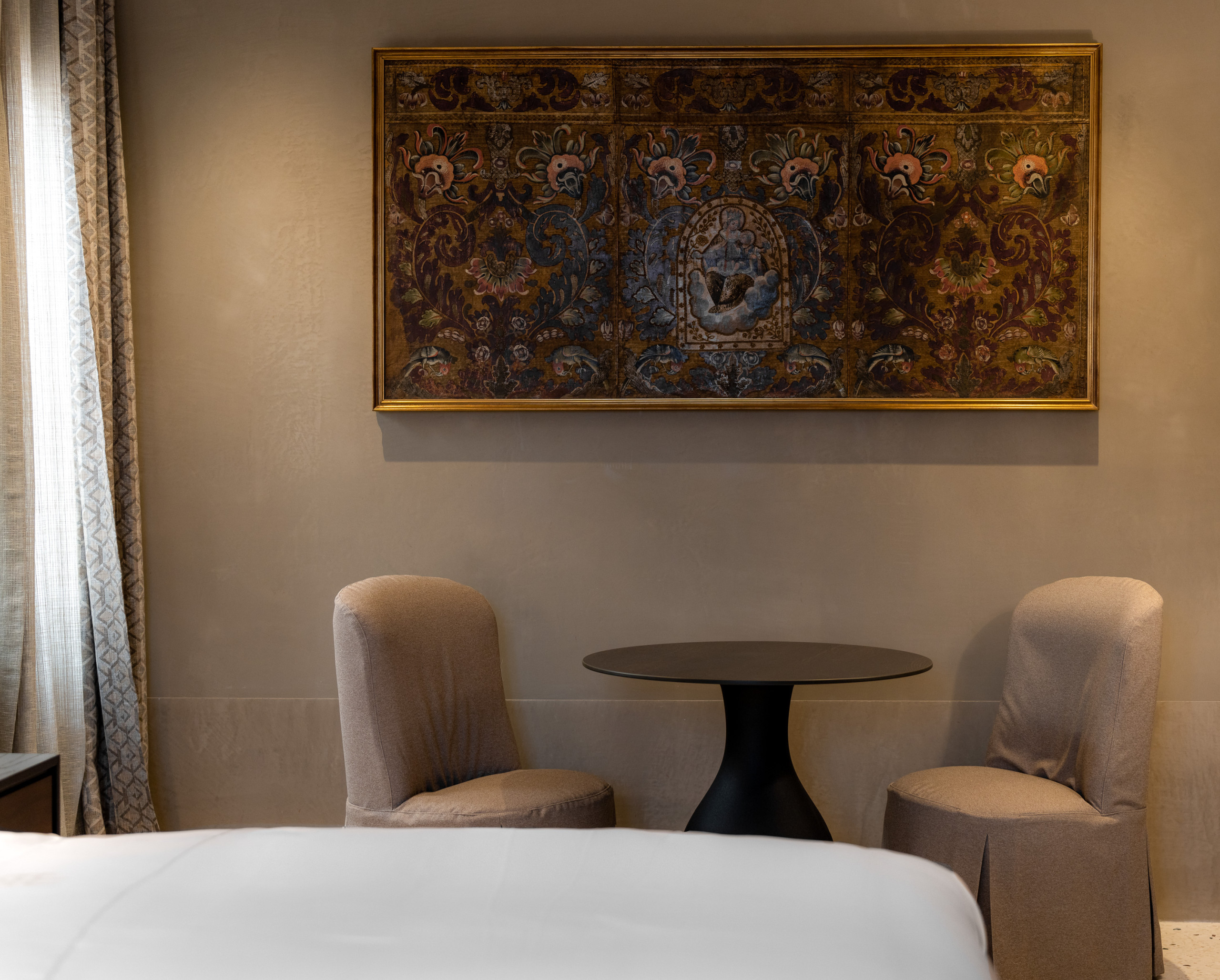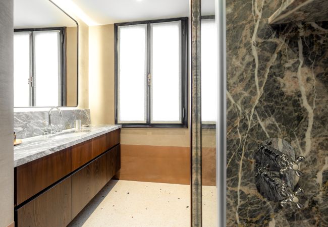 TSuite VIII is an elegant and thoughtfully designed one-bedroom apartment located on the second floor, spanning 980 sq. ft. (91 m²). It features a spacious double bedroom with a walk-in closet and private WC, a luxurious bathroom with a bathtub and separate shower, and a state-of-the-art kitchen flowing into a stylish living room. With private elevator access and beautiful architectural details, Suite VIII offers a luxurious and contemporary take on traditional Venetian living in the heart of San Marco.