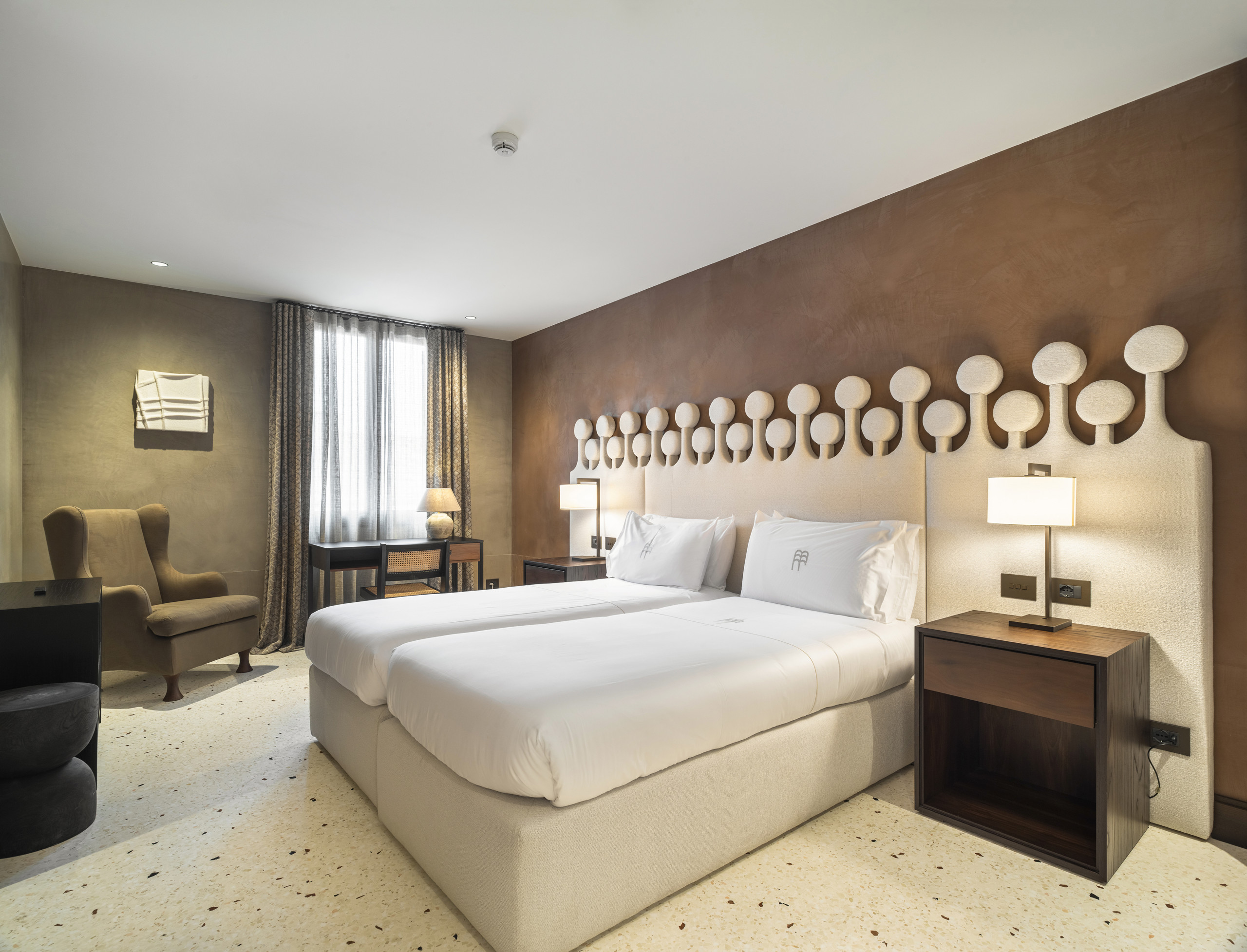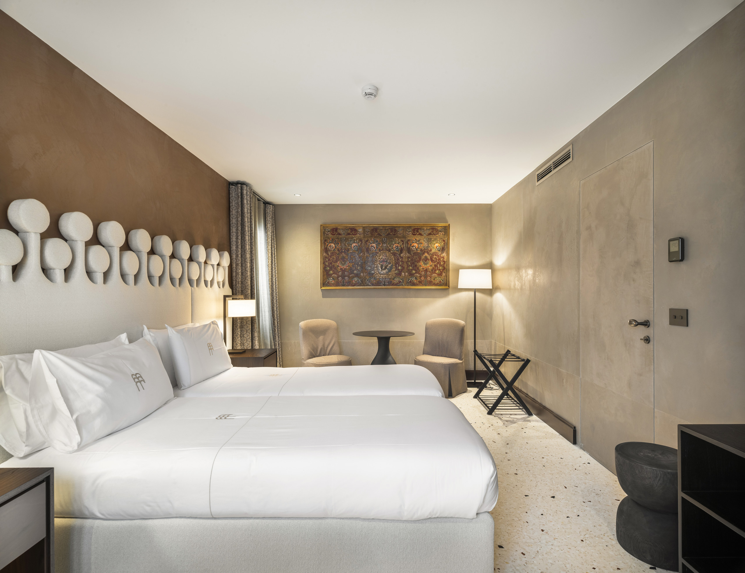 The night area, configurable with a double bed or two single beds, is designed to ensure comfort and versatility, maintaining an essential and sophisticated style. The atmosphere is intimate and private, ideal for those who wish to stay in a context of historical value, with the comfort of a contemporary residence.