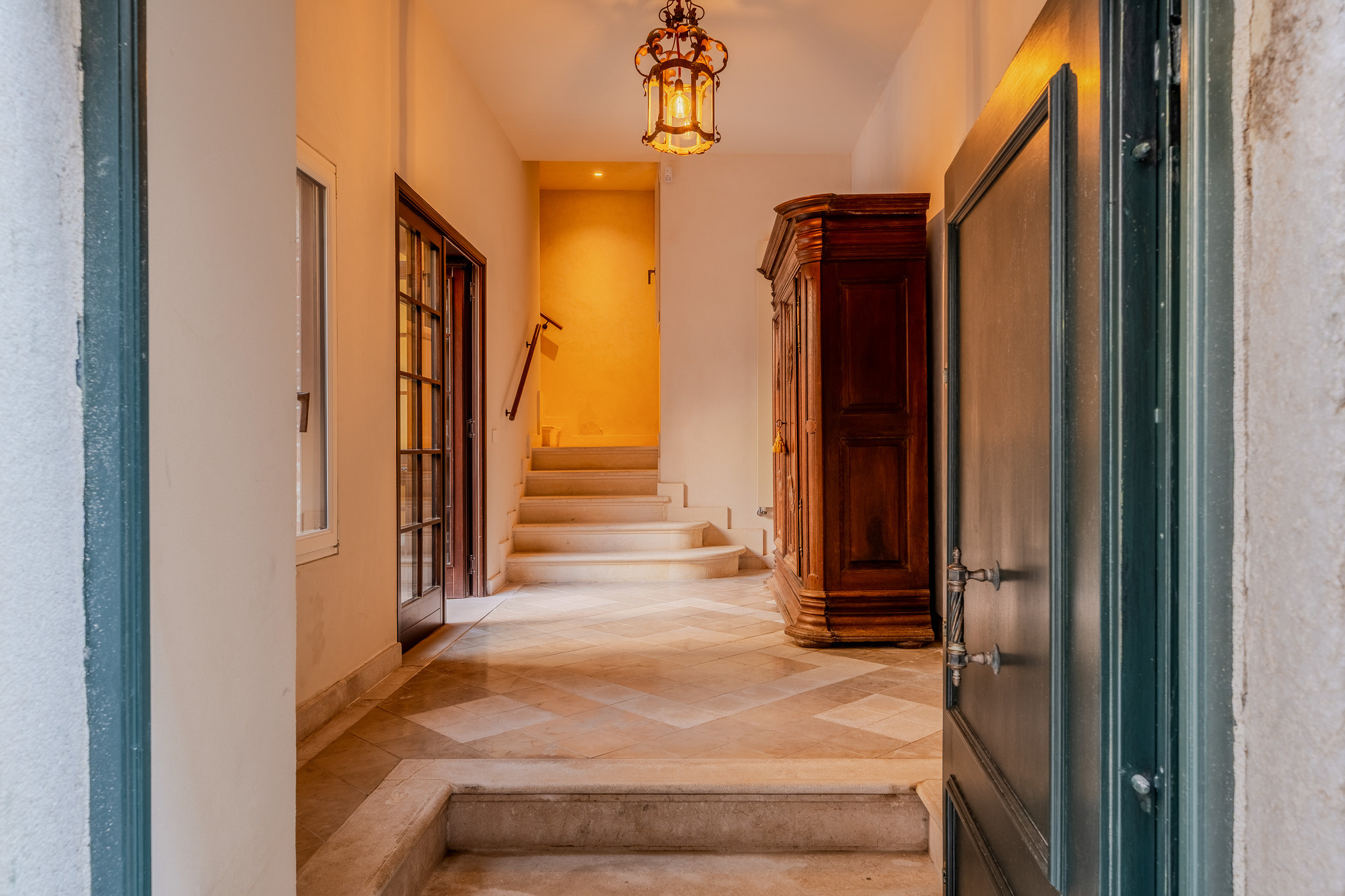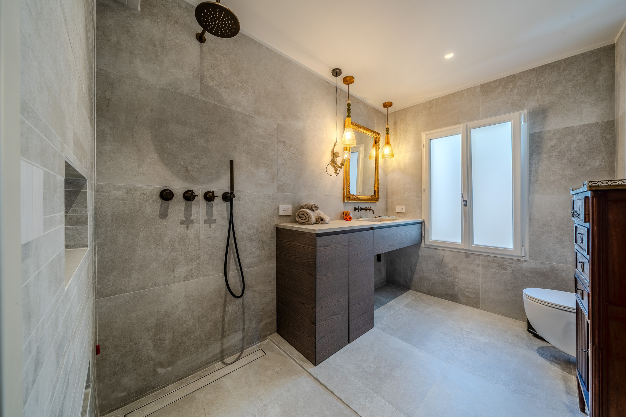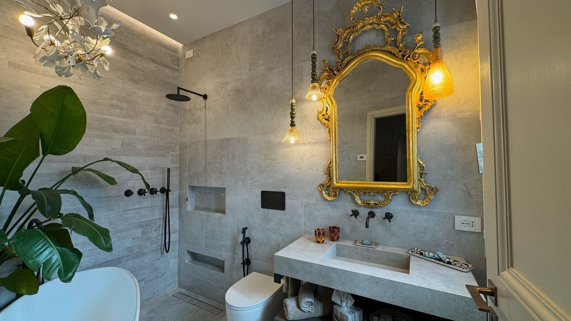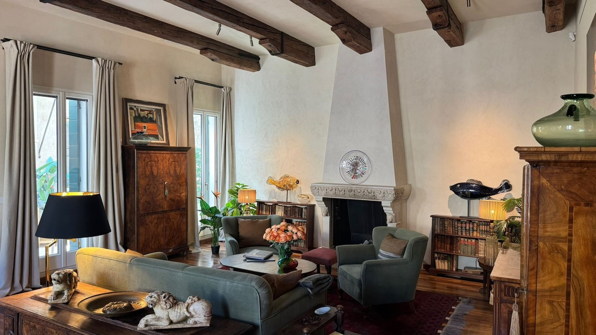 Inside, the residence combines modern elegance and historical charm, with fine wood flooring, selected artworks, and designer furnishings. The main suite offers a peaceful retreat with a walk-in wardrobe and a spa-style bathroom equipped with a freestanding bathtub and rainfall shower.