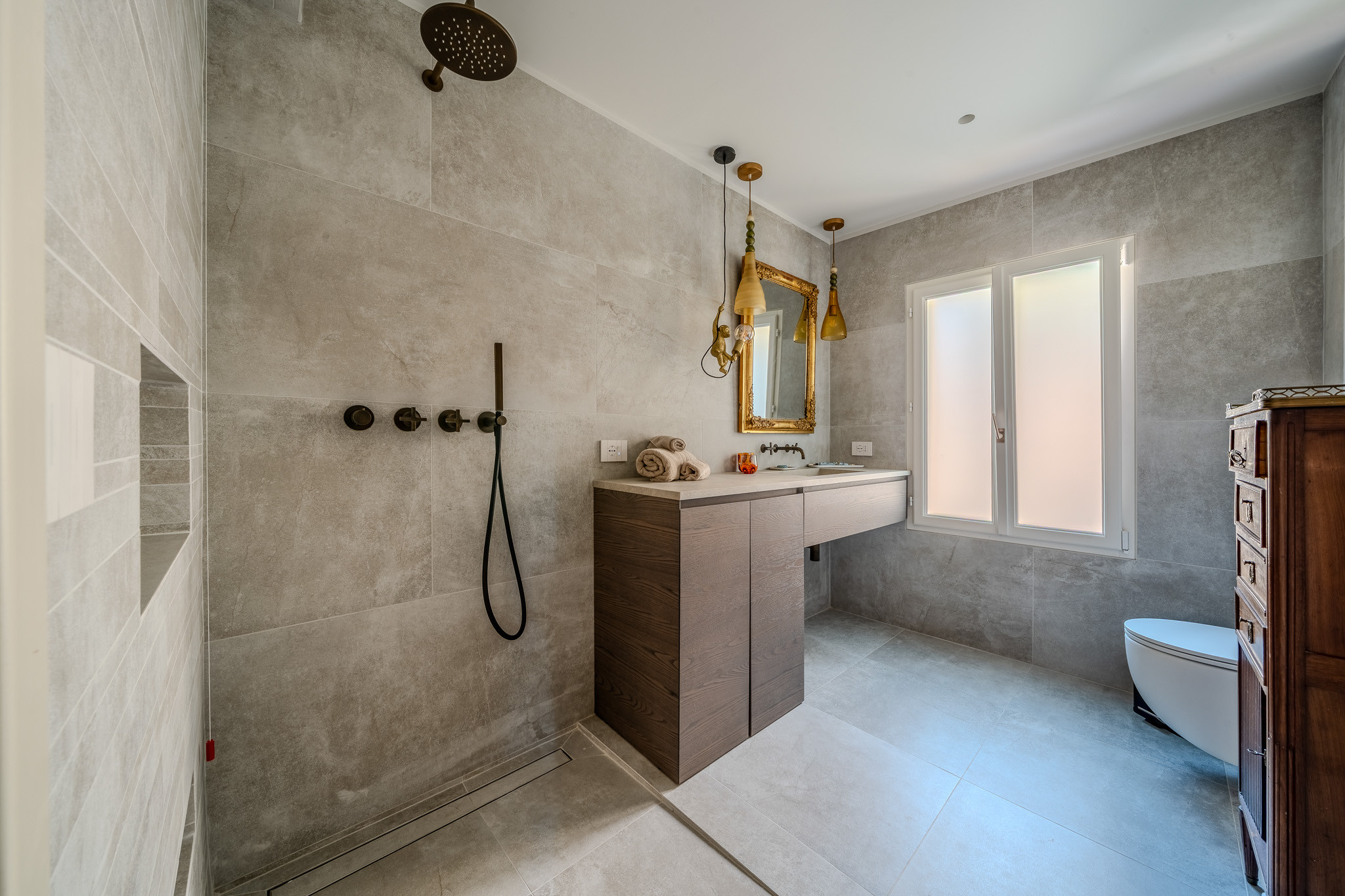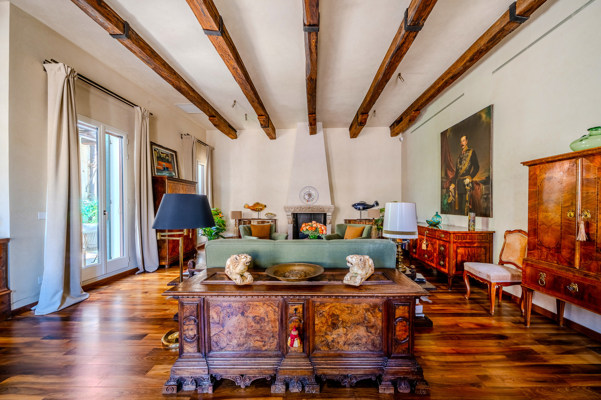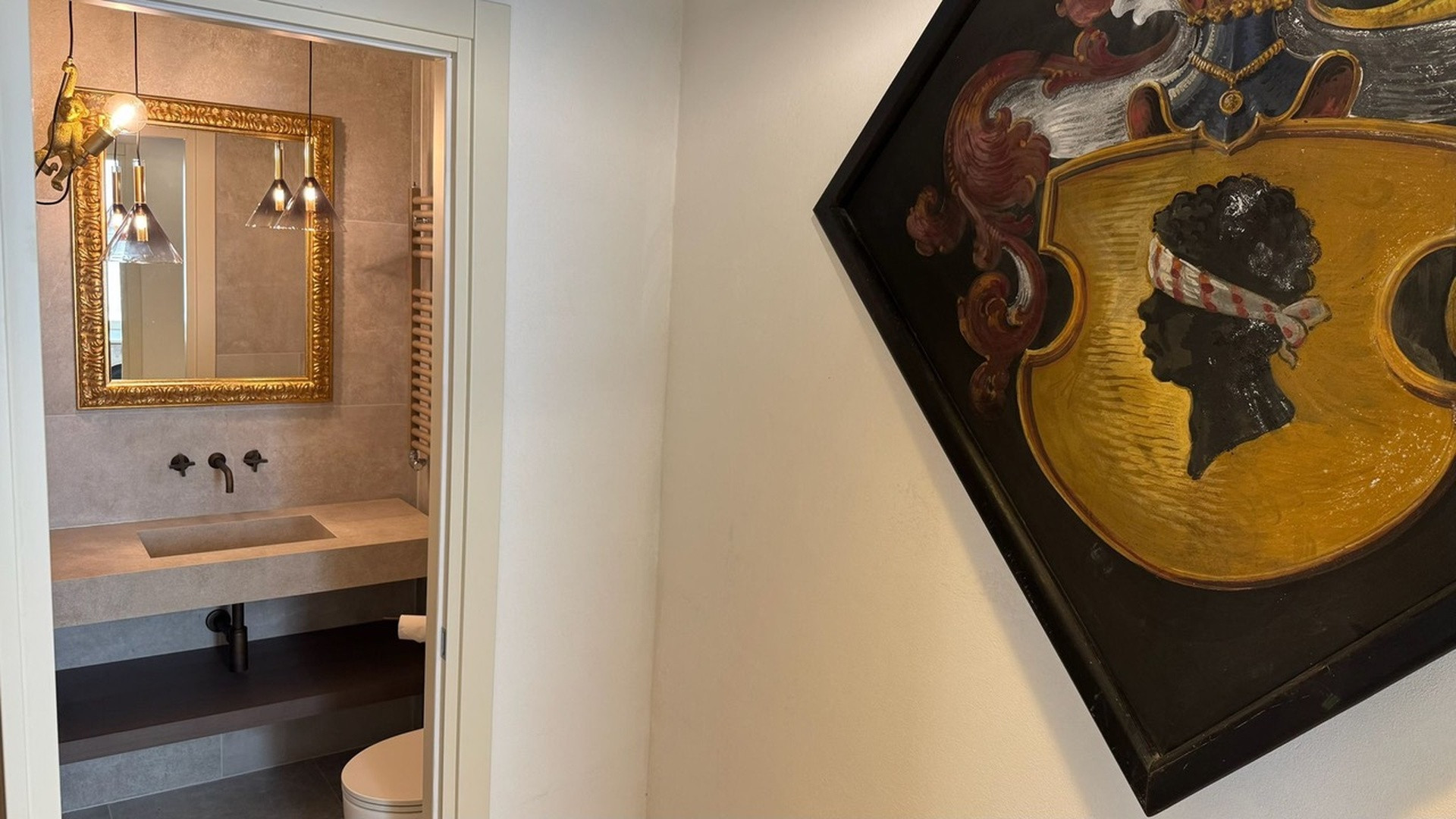 Inside, the residence combines modern elegance and historical charm, with fine wood flooring, selected artworks, and designer furnishings. The main suite offers a peaceful retreat with a walk-in wardrobe and a spa-style bathroom equipped with a freestanding bathtub and rainfall shower.