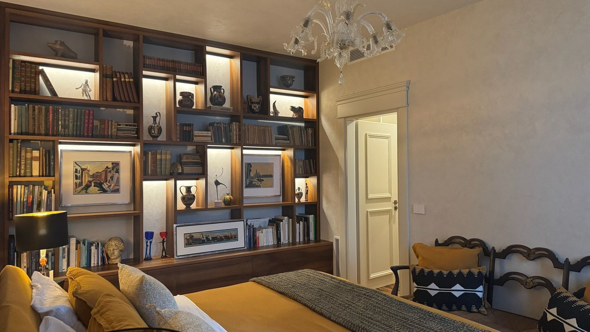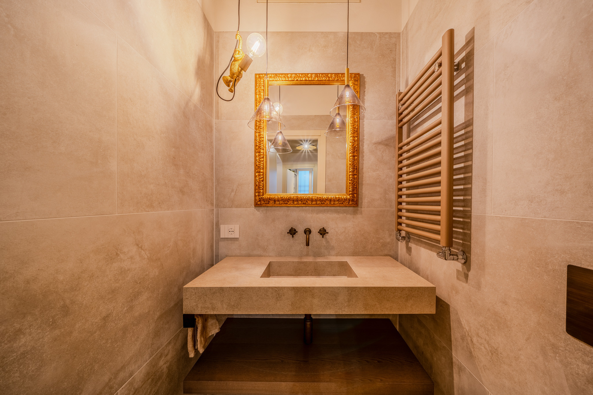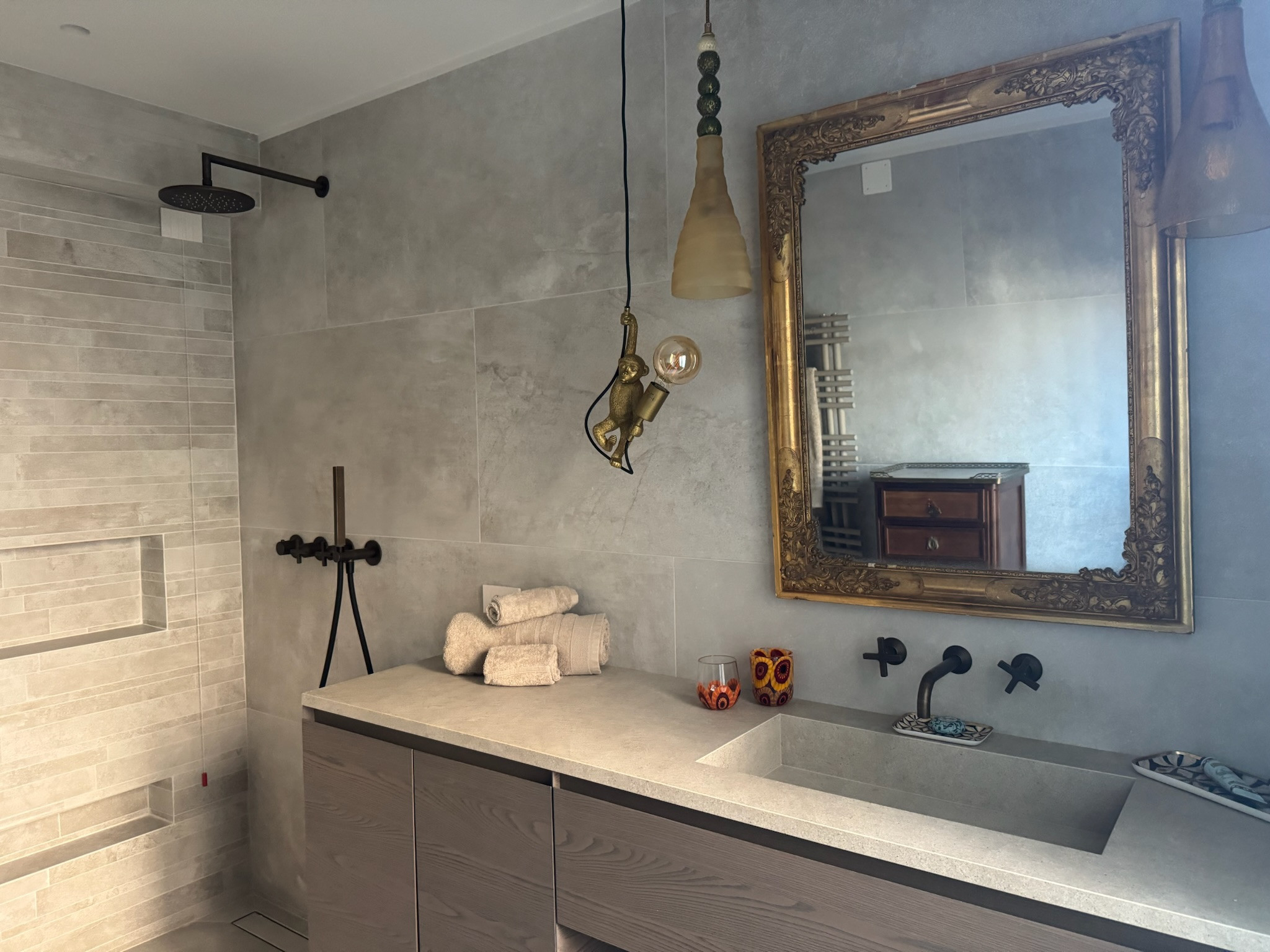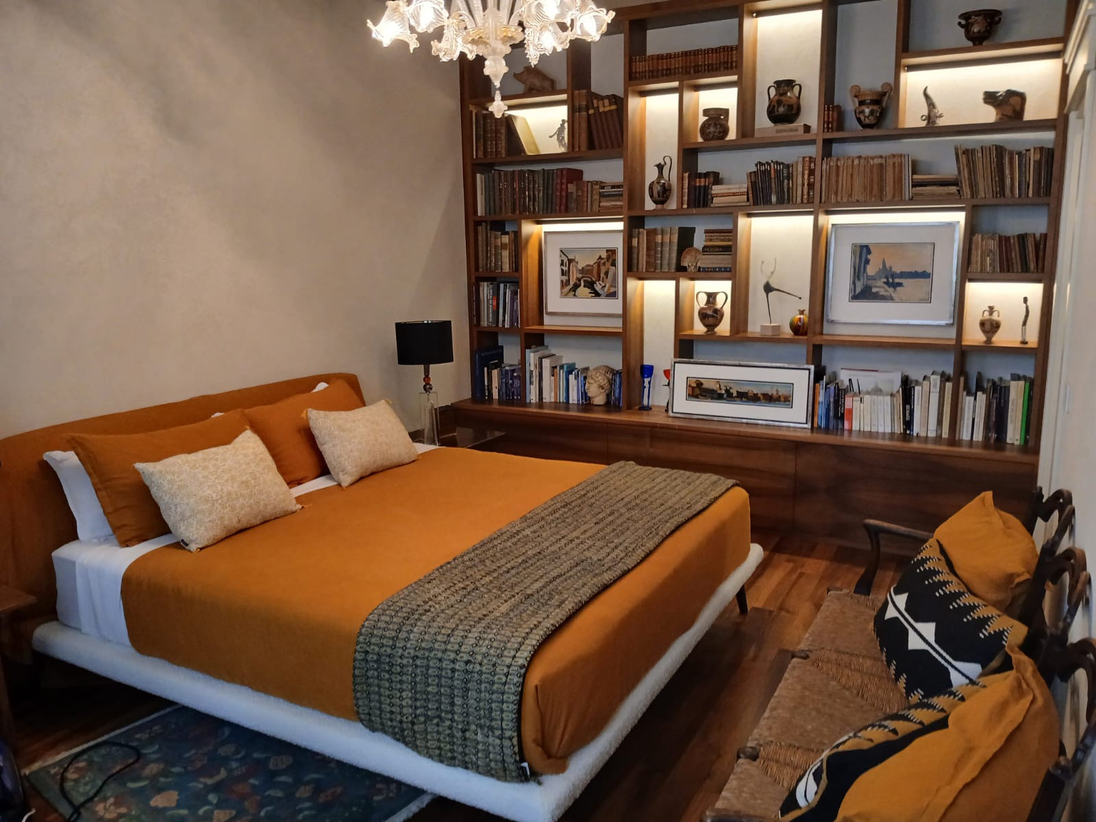 Inside, the residence combines modern elegance and historical charm, with fine wood flooring, selected artworks, and designer furnishings. The main suite offers a peaceful retreat with a walk-in wardrobe and a spa-style bathroom equipped with a freestanding bathtub and rainfall shower.