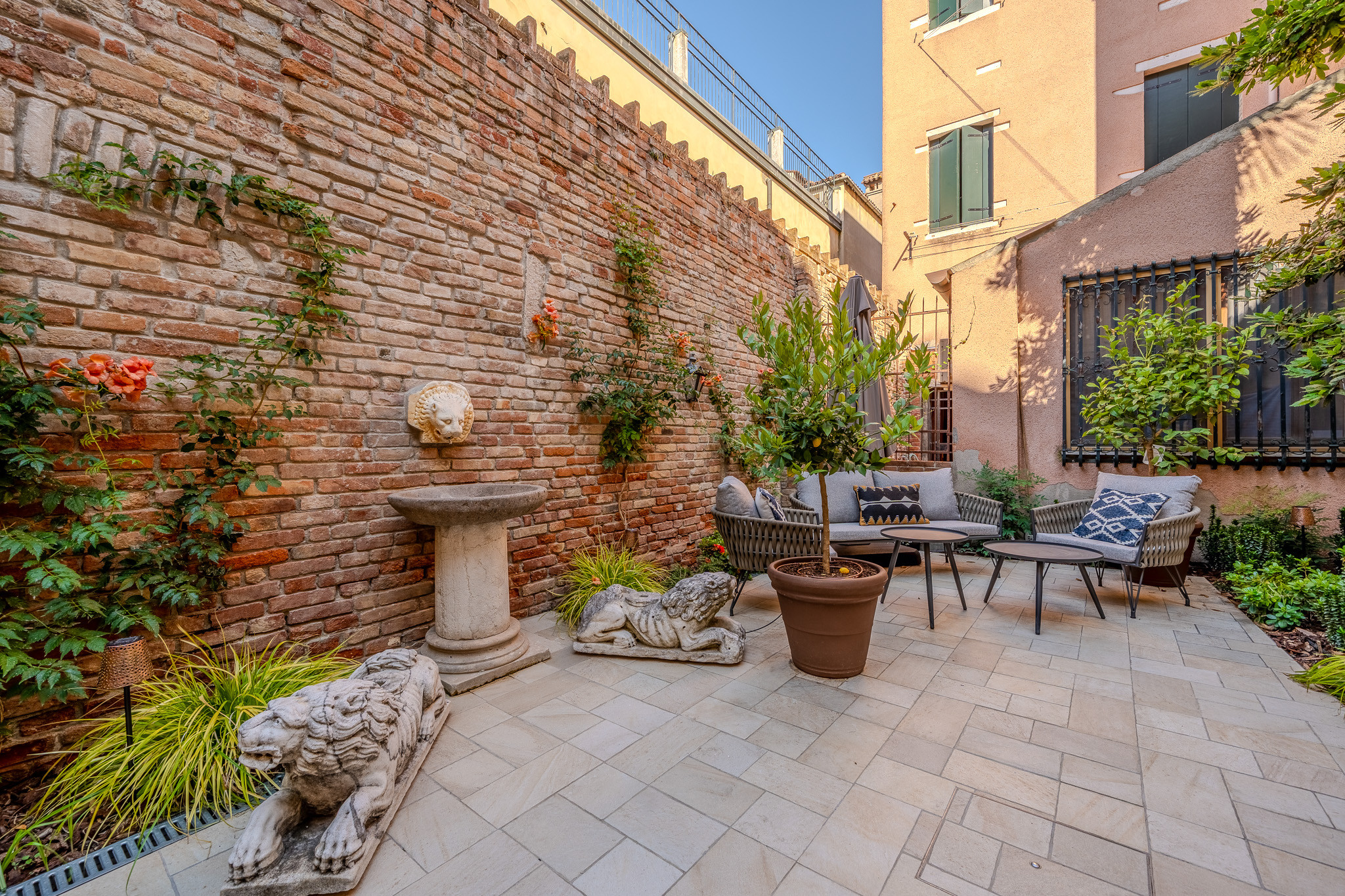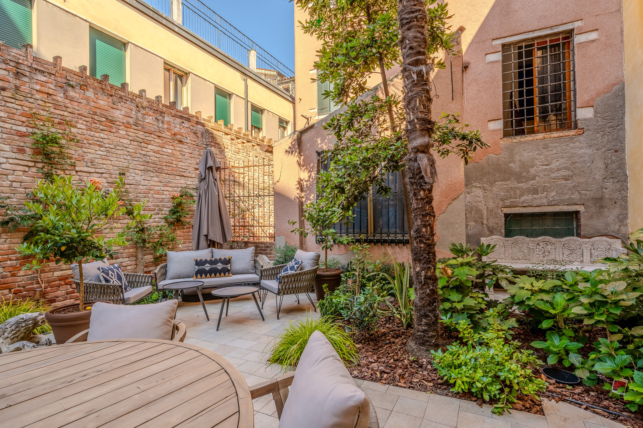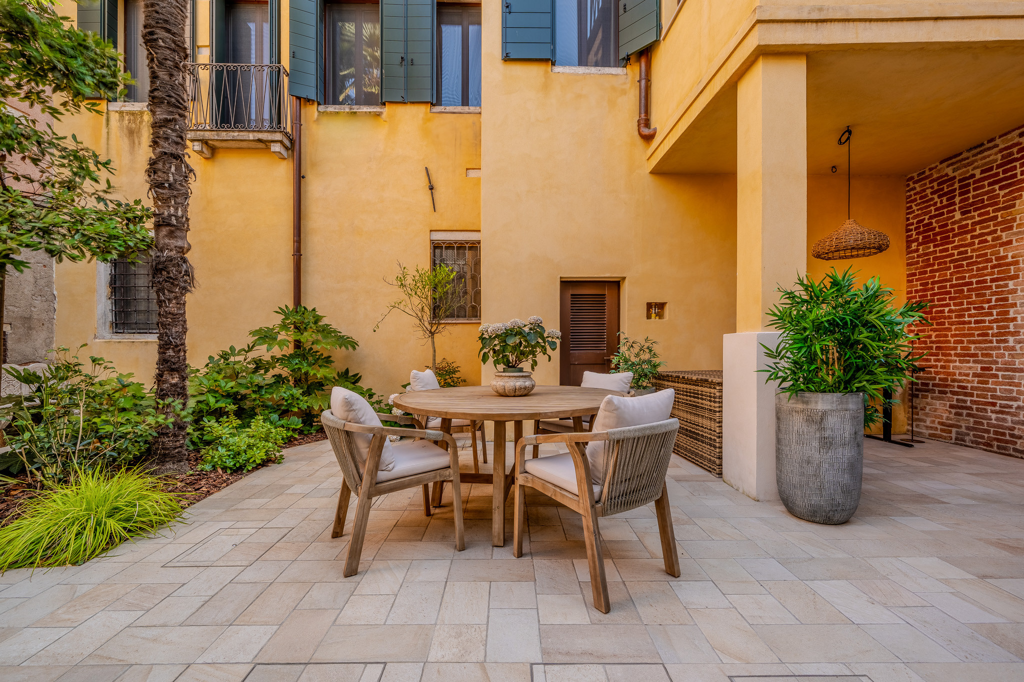 Start your days with a cappuccino on the sunny terrace, surrounded by greenery and the sweet murmur of Venice. In the evening, enjoy a glass of wine in the courtyard, a secret garden enclosed by ancient brick walls and Mediterranean vegetation — a truly unique outdoor oasis in the city.