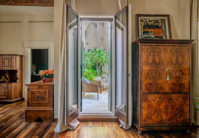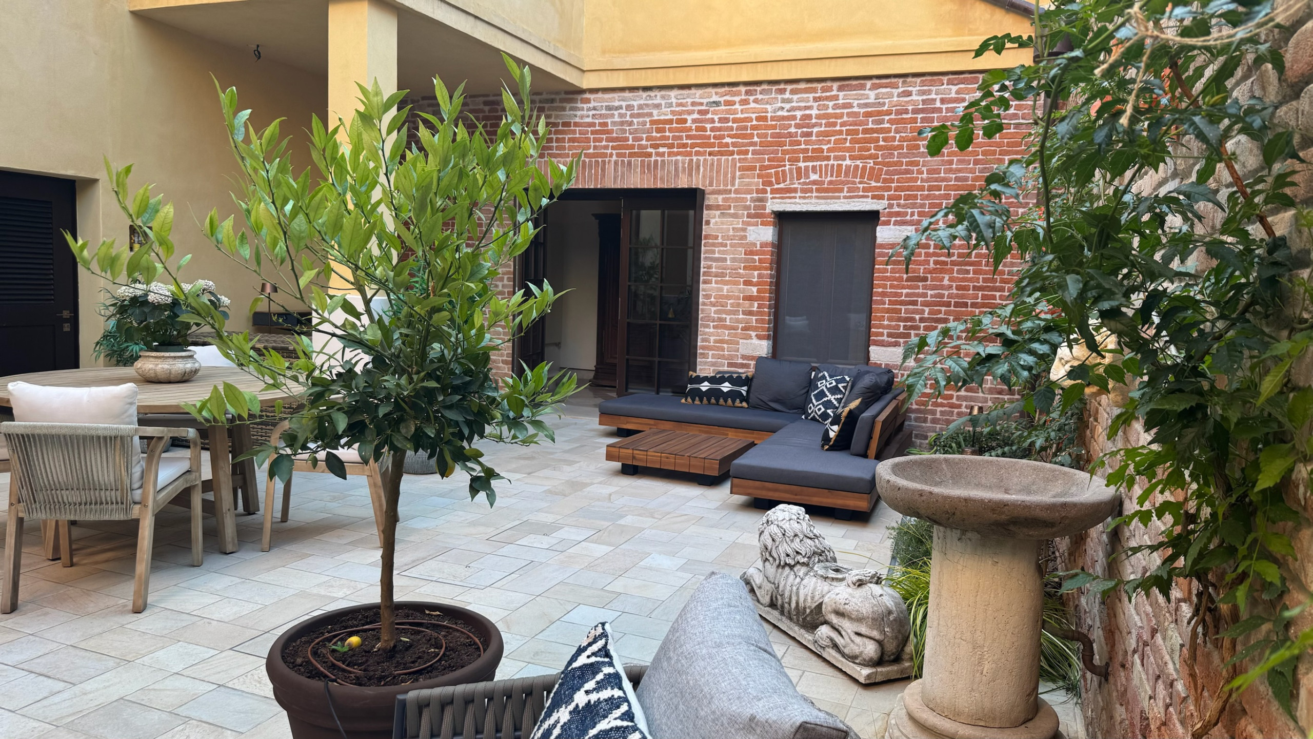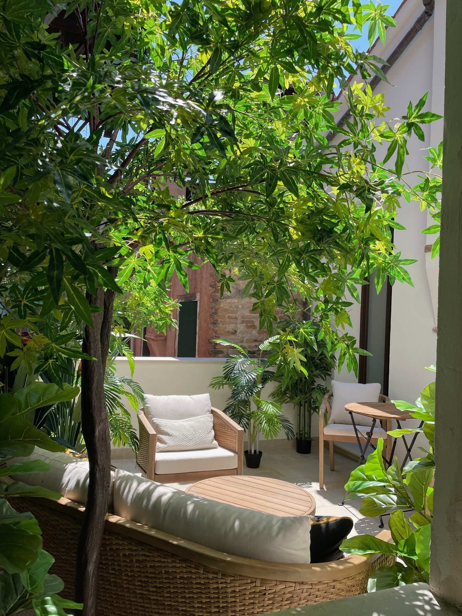 Start your days with a cappuccino on the sunny terrace, surrounded by greenery and the sweet murmur of Venice. In the evening, enjoy a glass of wine in the courtyard, a secret garden enclosed by ancient brick walls and Mediterranean vegetation — a truly unique outdoor oasis in the city.