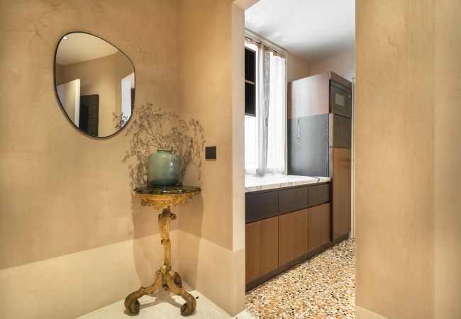 L'appartement Vendramin, situé dans le prestigieux Palazzo dell'Albero d'Oro, est un havre de luxe et de raffinement. Avec une chambre spacieuse méticuleusement conçue, une cuisine entièrement équipée et deux salles de bains, dont l'une avec une luxueuse baignoire en marbre et l'autre avec une douche moderne, Vendramin offre une expérience de vie sans égal. Chaque détail est pensé pour garantir le confort et la beauté, dans un contexte d'élégance vénitienne extraordinaire.
