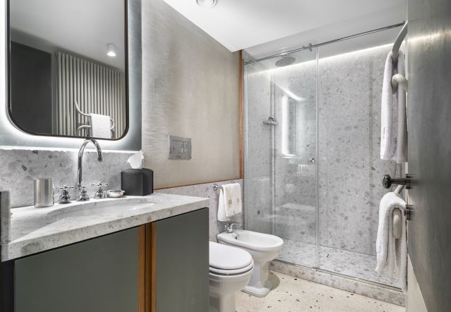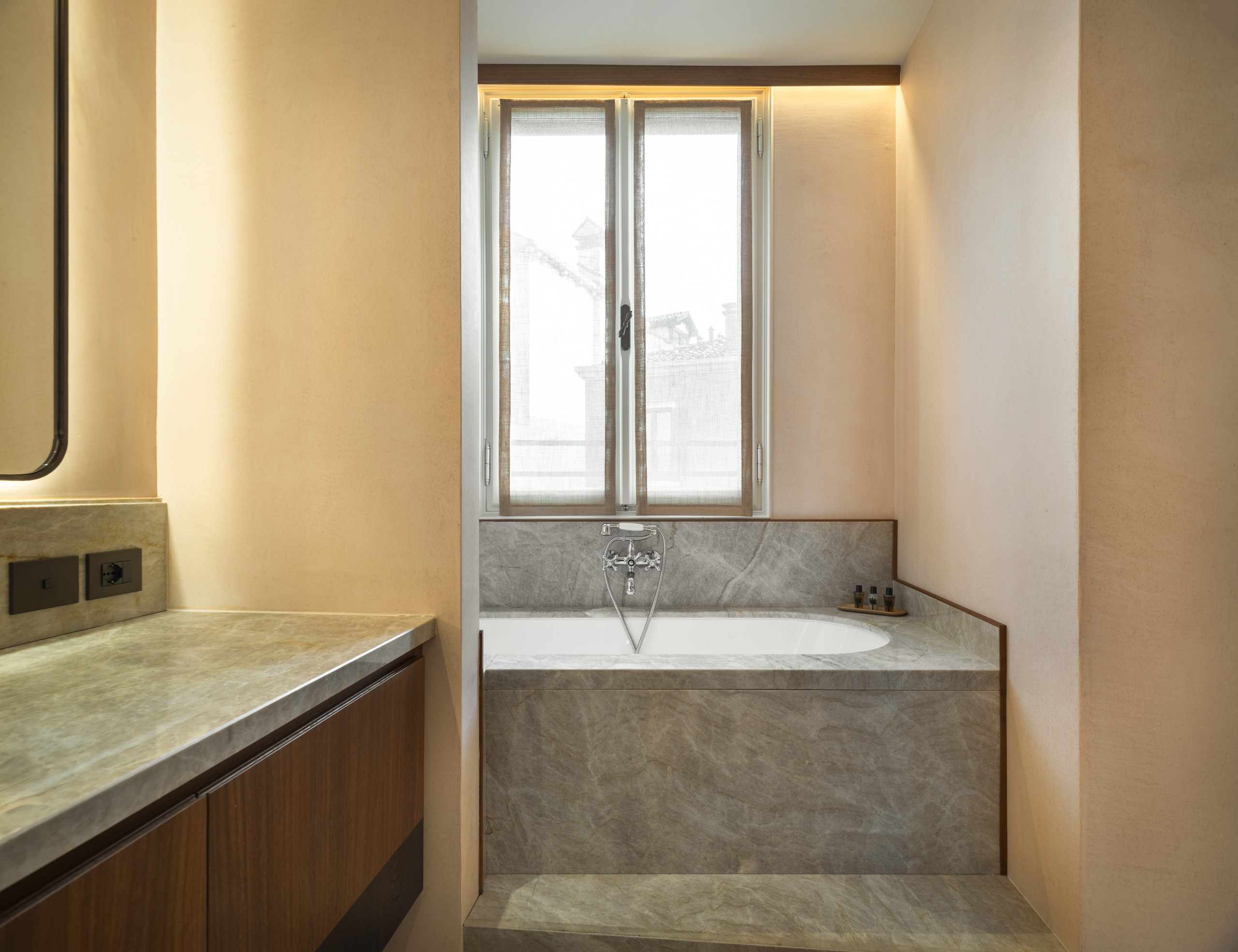 Conçu par le célèbre designer vénitien Umberto Branchini, le palais fusionne la tradition vénitienne avec une élégance contemporaine unique. L'utilisation judicieuse des couleurs et des matériaux précieux – du marmorino au pastellone, jusqu'aux marbres raffinés des salles de bain – est au plus haut niveau. Des objets d'art, des meubles d'époque et des lampes soigneusement sélectionnés contribuent à créer l'atmosphère raréfiée et authentique d'une véritable maison vénitienne.