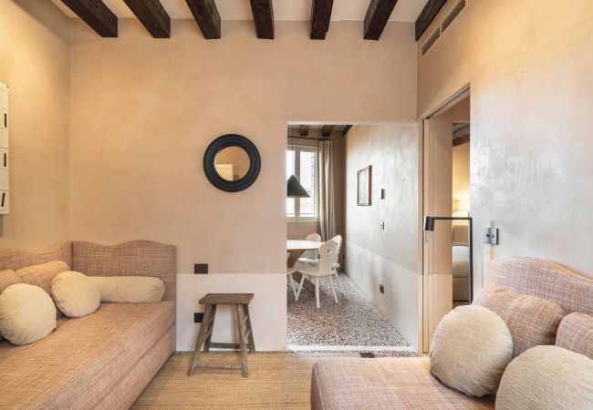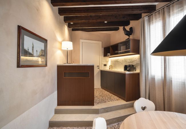 L'appartement Vendramin, situé dans le prestigieux Palazzo dell'Albero d'Oro, est un havre de luxe et de raffinement. Avec une chambre spacieuse méticuleusement conçue, une cuisine entièrement équipée et deux salles de bains, dont l'une avec une luxueuse baignoire en marbre et l'autre avec une douche moderne, Vendramin offre une expérience de vie sans égal. Chaque détail est pensé pour garantir le confort et la beauté, dans un contexte d'élégance vénitienne extraordinaire.