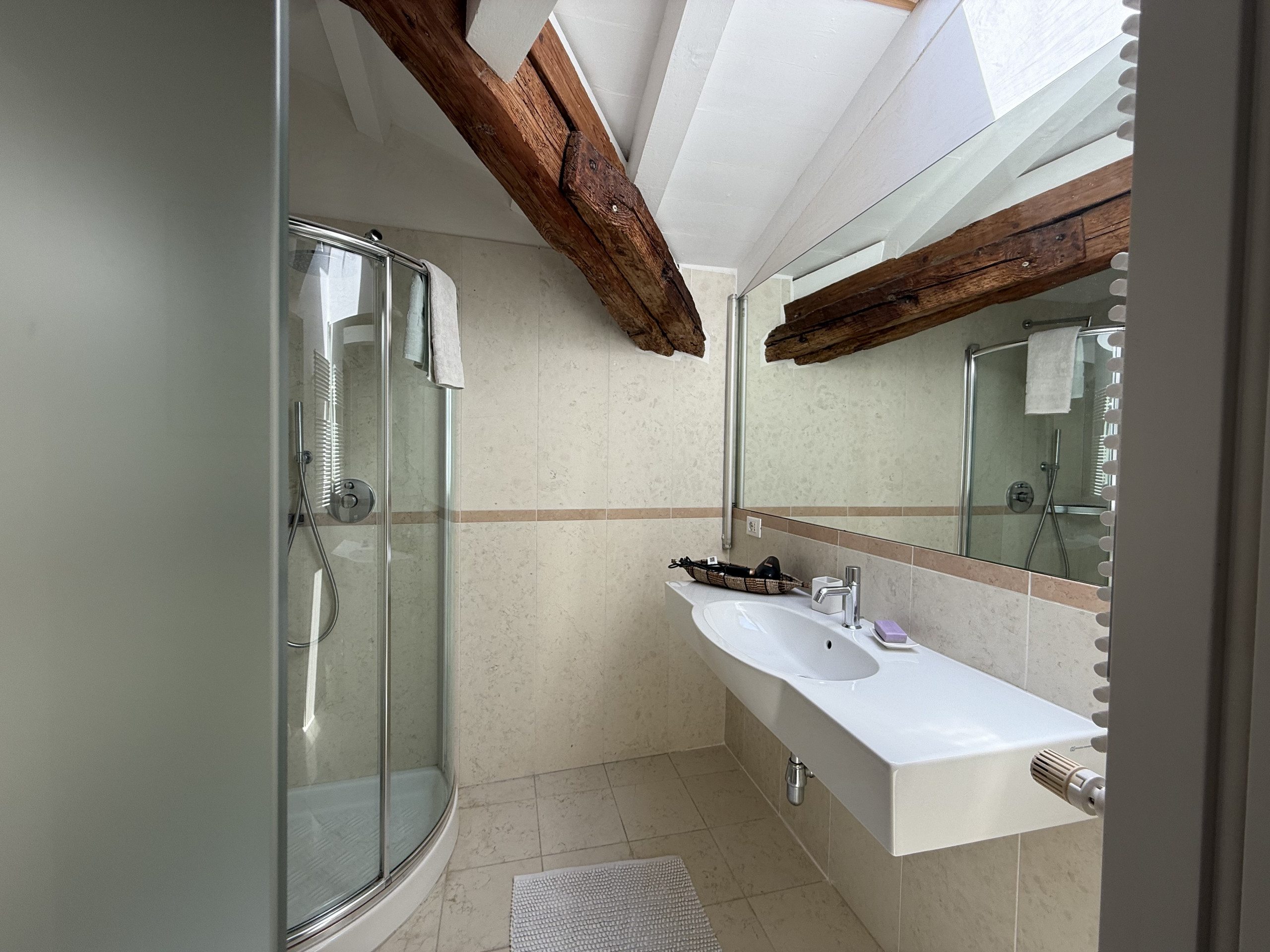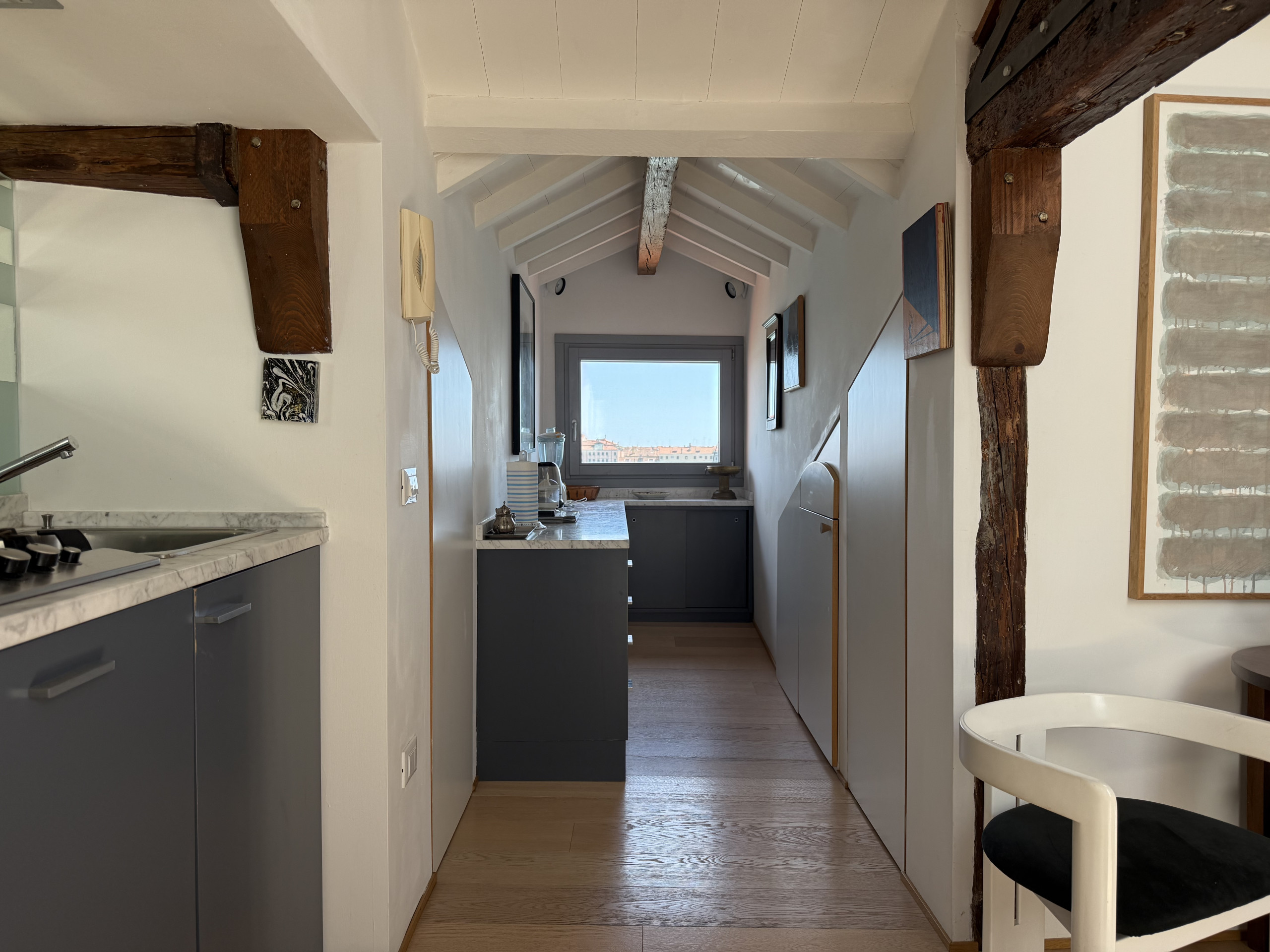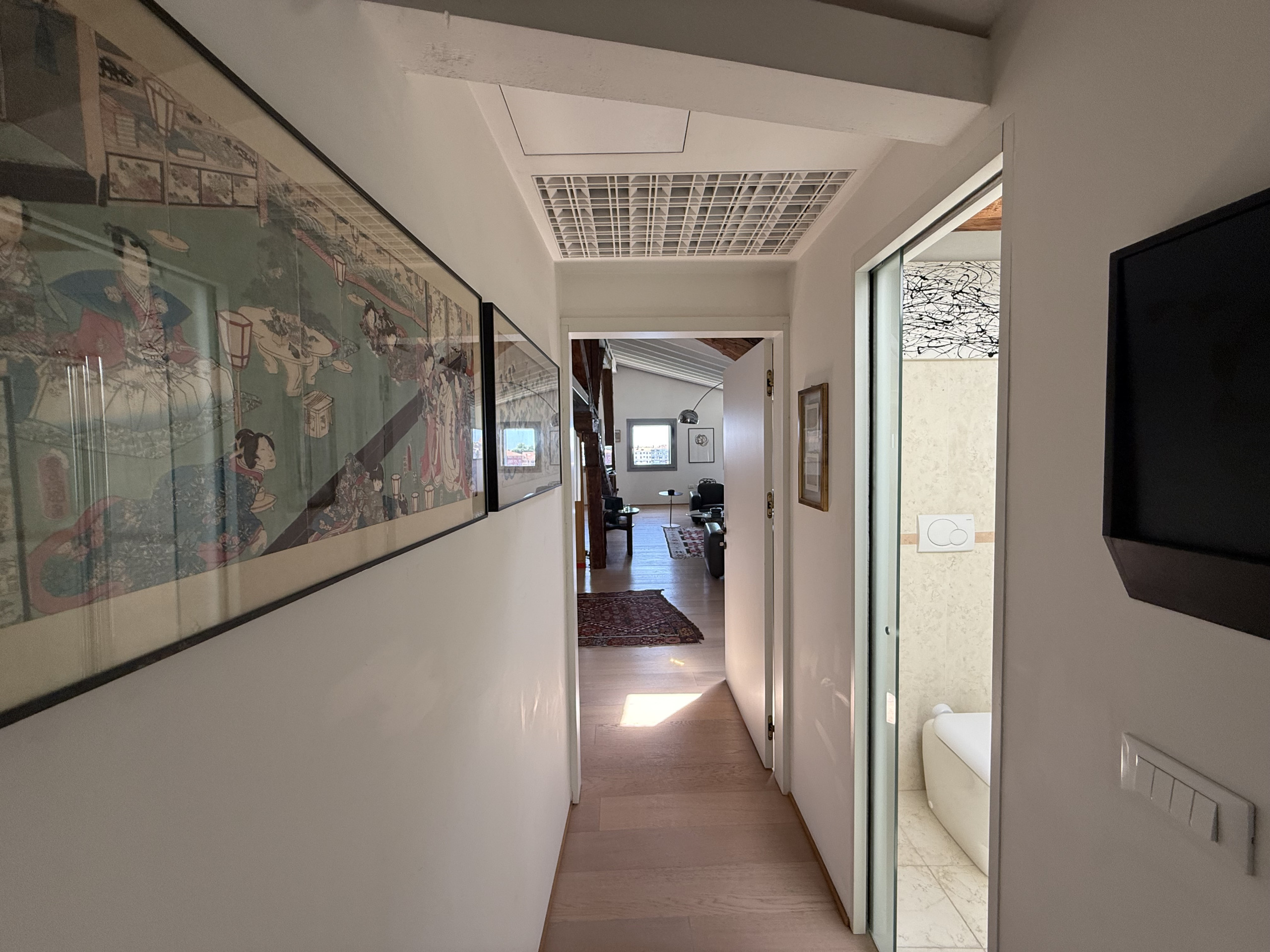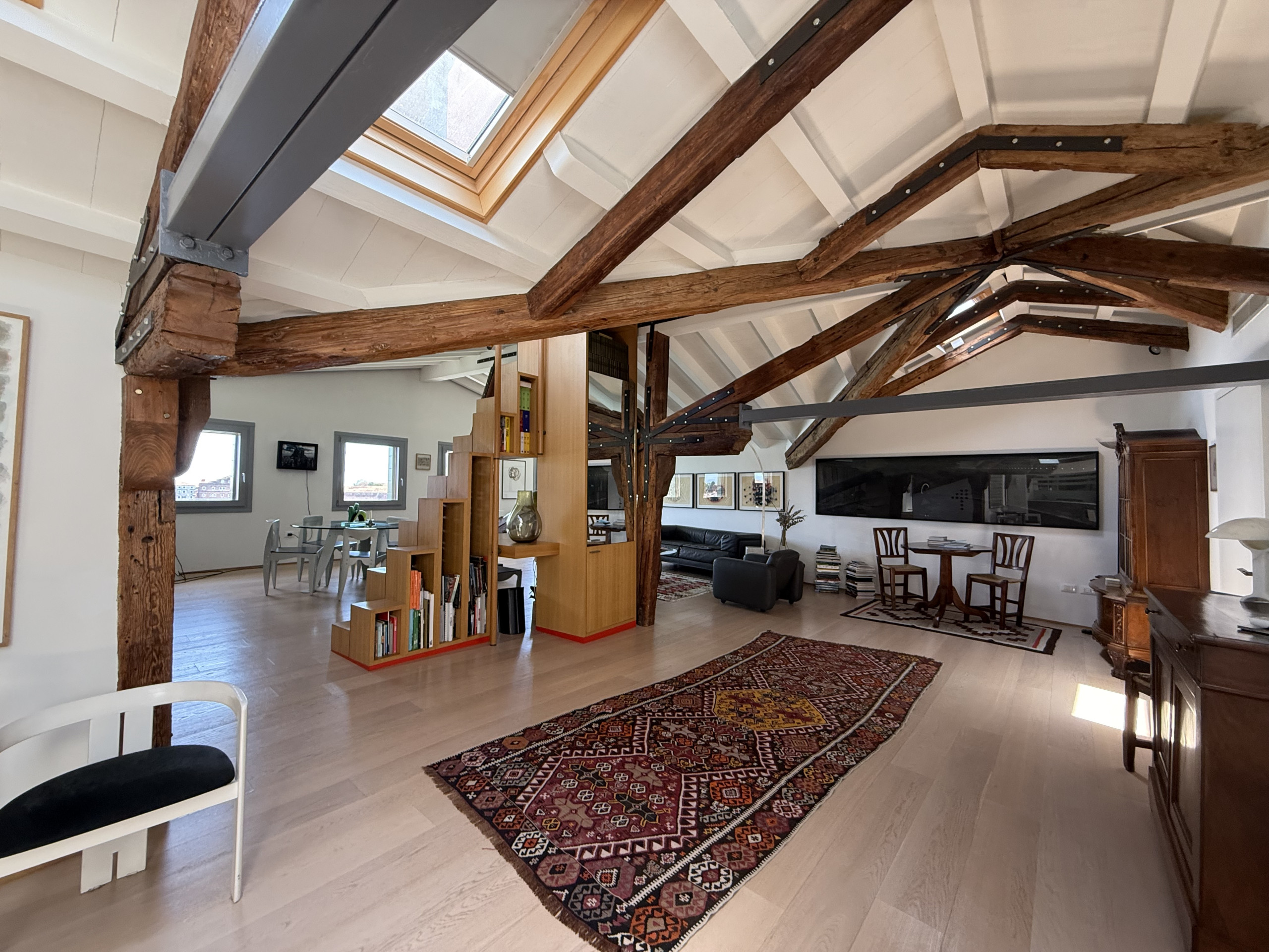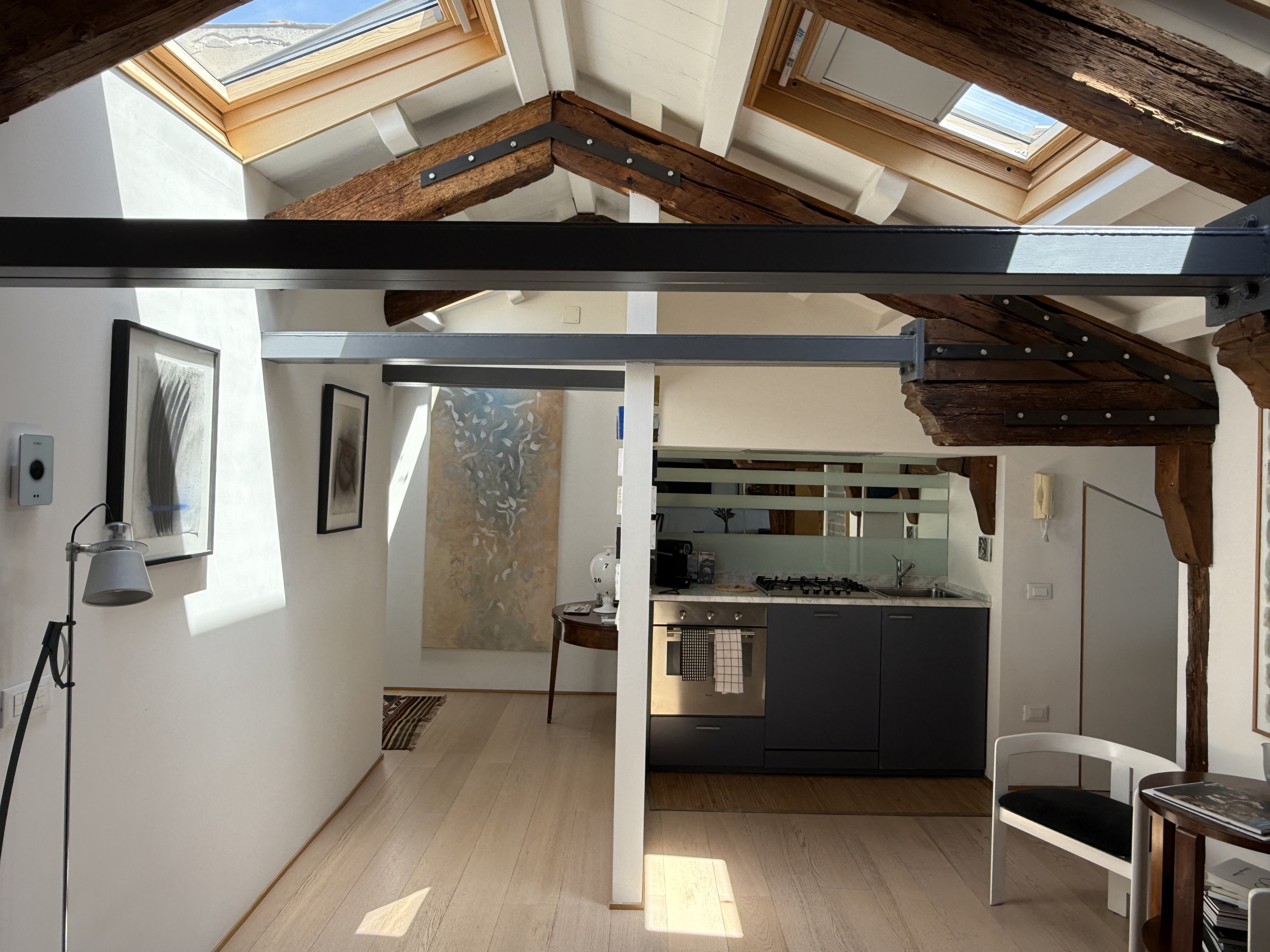 Niché dans un palazzo historique, cet appartement de dernier étage charmant offre